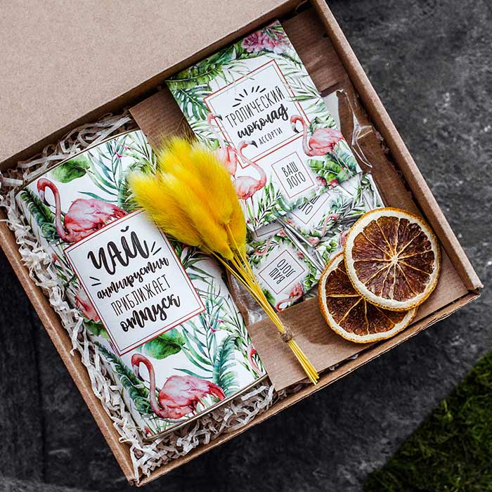 Любимый напиток в эффектной упаковке уместен в любое время года – как в летний зной, чтобы охладиться насыщенным вкусом зеленого чая, так и холодной зимой, чтобы согреться после долгой прогулки. Вашим партнерам, несомненно, придется по душе этот действительно полезный подарок!