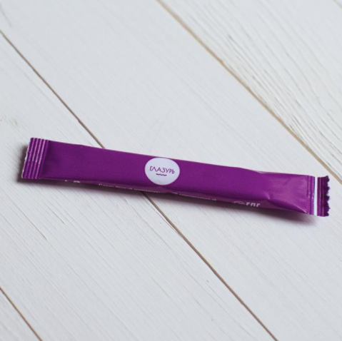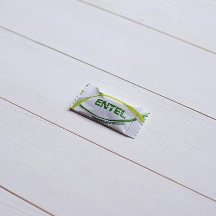 Жевательная резинка в упаковке «подушка» - пакетике с нанесённым логотипом.