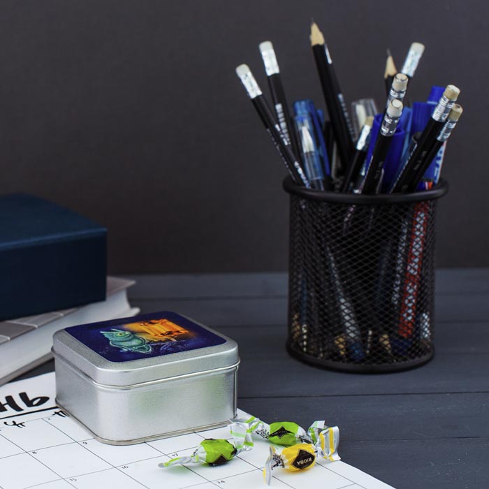 Знакомая всем с детства металлическая коробочка с леденцами внутри. Осторожно! Она заряжена положительными эмоциями! На крышку коробочки мы нанесём логотип вашей компании. Набор станет замечательным подарком вашим сотрудникам на тематический корпоратив или приятным дополнением к основному подарку.