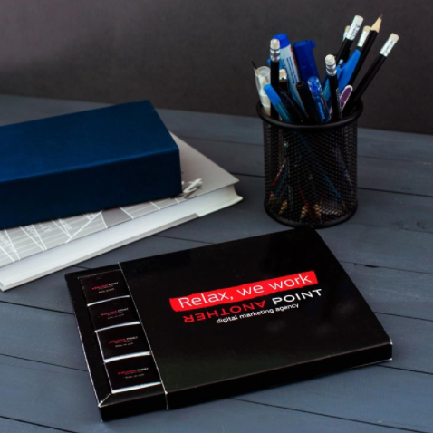 Набор в каркасной коробочке, который не стыдно подарить высшему руководству компании или самым ценным сотрудникам для того, чтобы отметить их упорную работу. Формат книги позволит вам разместить всю необходимую информацию о вашей компании. Возможна печать на дизайнерской бумаге и с применением шелкографии или тиснения.