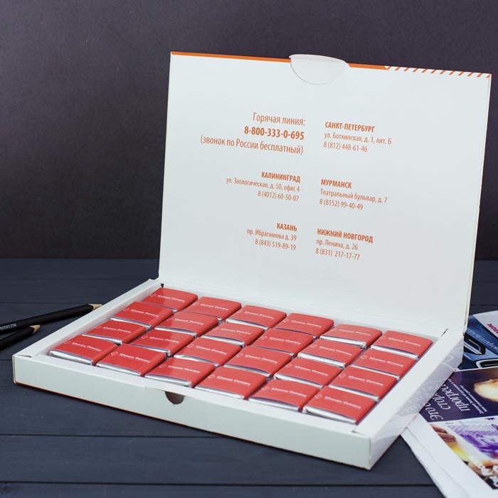 «Визитница» - отличный вариант промо-сувенира на ваше корпоративное мероприятие - будь то выставка, презентация, ярмарка или конференция. «Краткость – сестра таланта» - лучшее описание для этого набора. Двусторонняя печать добавит изюминки, а брендированные шоколадки составят приятное послевкусие.