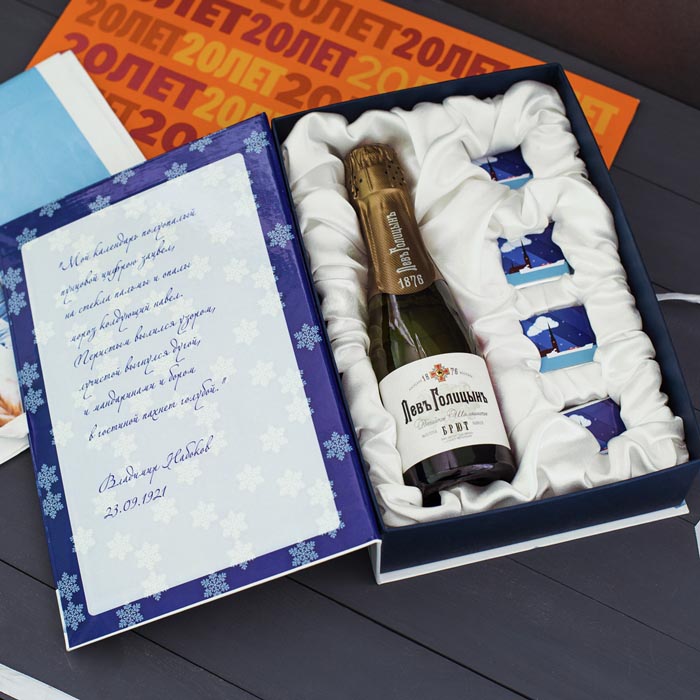 Когда хочется совместить несколько подарков в одном, набор «Посылка» спешит на помощь! Открытка и шоколадки внутри - советуем вам оформить набор либо в виде письма, либо, как вариант, напечатать его на дизайнерской бумаге, применив технику тиснения или шелкографию.